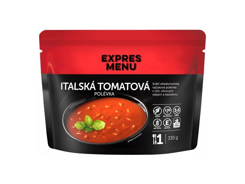 Svěží středomořská rajčatová polévka s rýží, olivovým olejem a bazalkou. Tuto oblíbenou polévku můžete na talíři dozdobit lžící zakysané smetany. Tato polévka je oblíbená u dětí a vegetariánů.