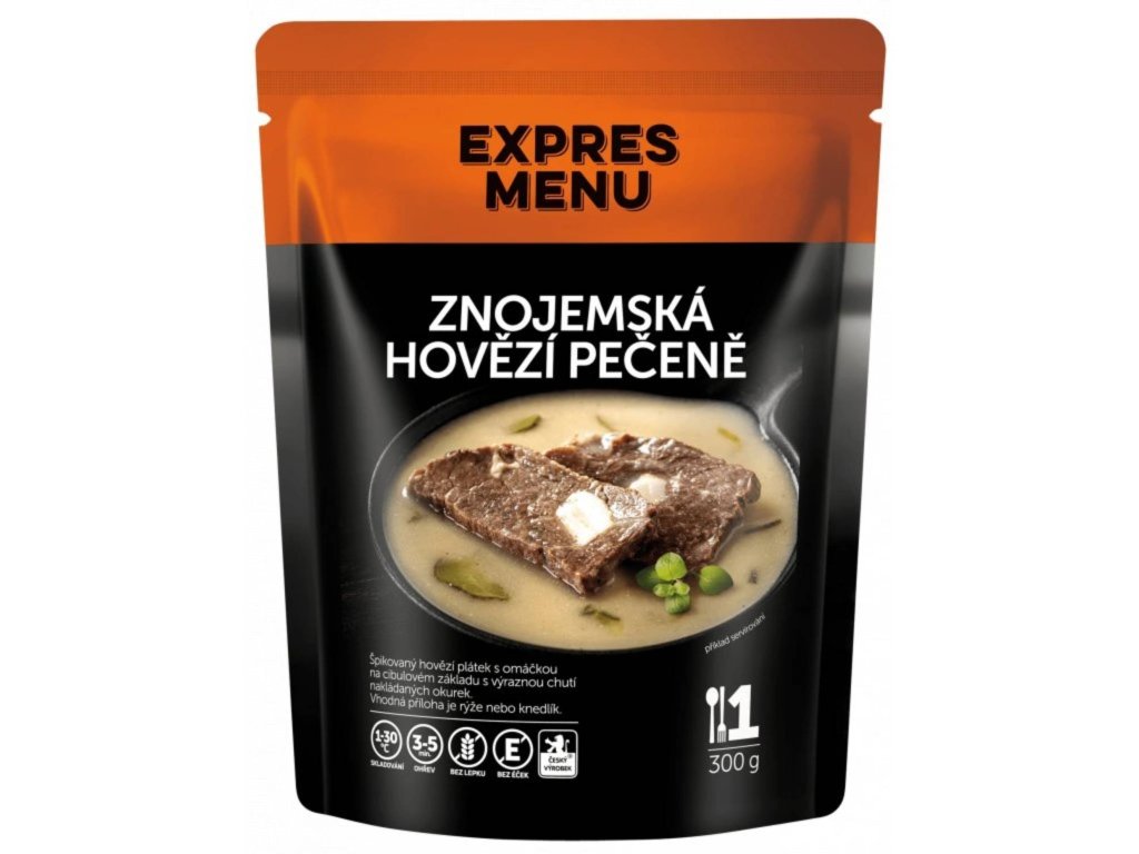 Složení: hovězí maso zadní (33 %), hovězí vývar (voda, hovězí maso a kosti), cibule, okurky sterilované (okurky, voda, ocet kvasný, sůl, kořenící výtažek, hořčičné semínko), uzená slanina (vepřové sádlo), řepkový olej, rýžová mouka, kukuřičná mouka, sůl kamenná, pepř.