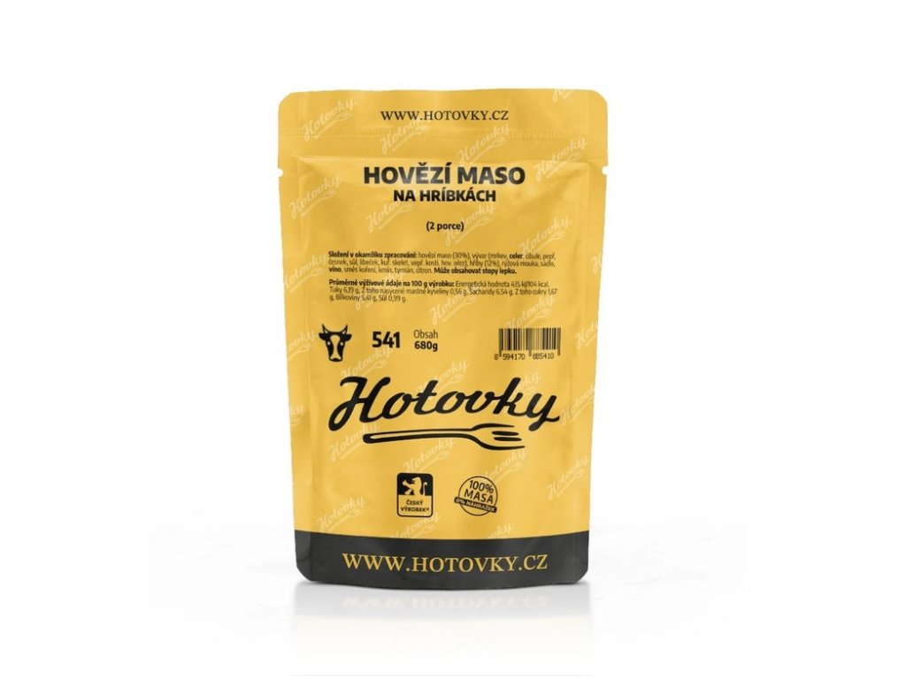 Dopřejte si kousky hovězího masa, v mírně zahuštěné omáčce a s chutí hub. Díky sterilaci bez konzervantů a bez nutnosti chlazení je ideální nejen na doma, ale i na cesty, dovolenou nebo do práce.