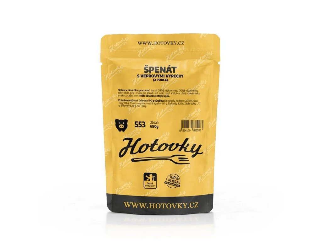 Hotovky Špenát s vepřovými výpečky 680 g (2 porce)