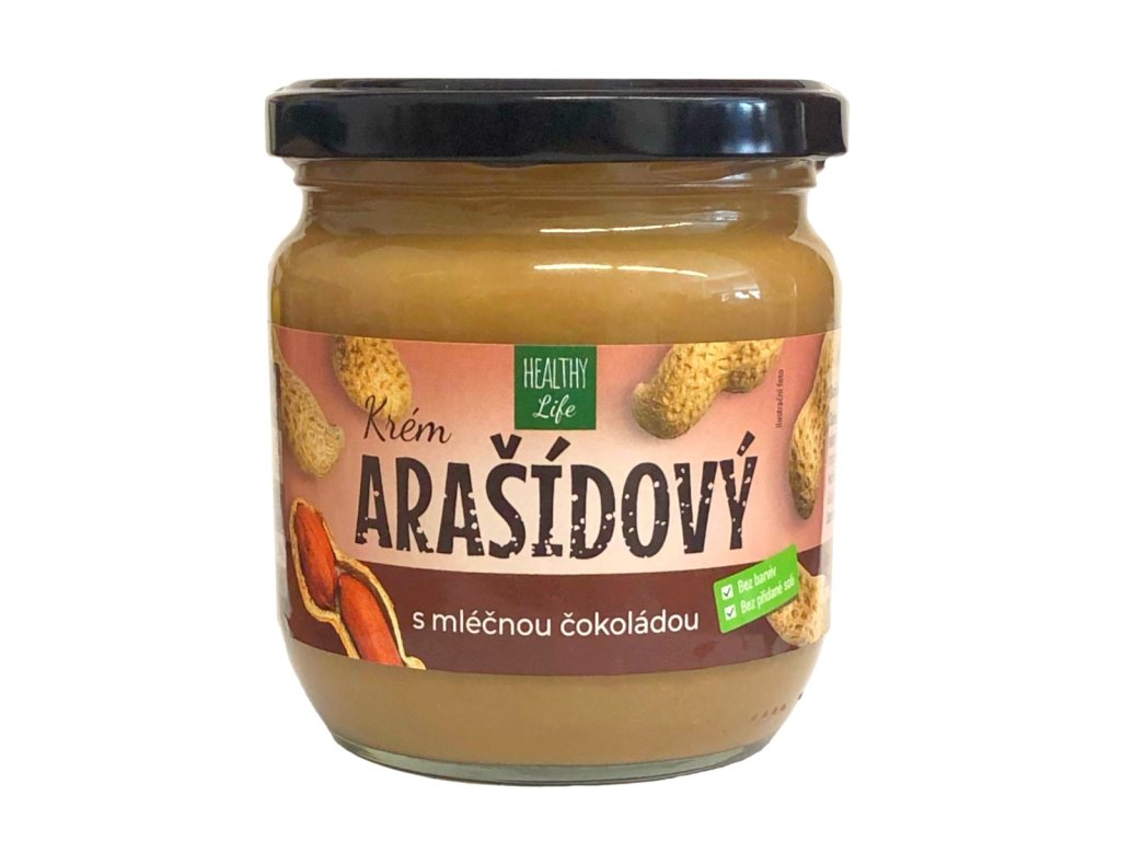 Arašídový krém s mléčnou čokoládou je chutnou a výživnou potravinou, ideální jako doplněk do Vašich jídel, svačinek, k vaření nebo jen tak na toast. Arašídový krém zachovává jednak vysoký obsah proteinů a současně výraznou arašídovou chuť. Je přírodním zdrojem kalorií.