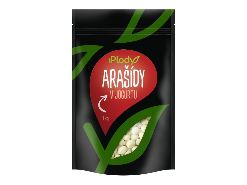 Pražená arašídová jádra máčená v jogurtové polevě.