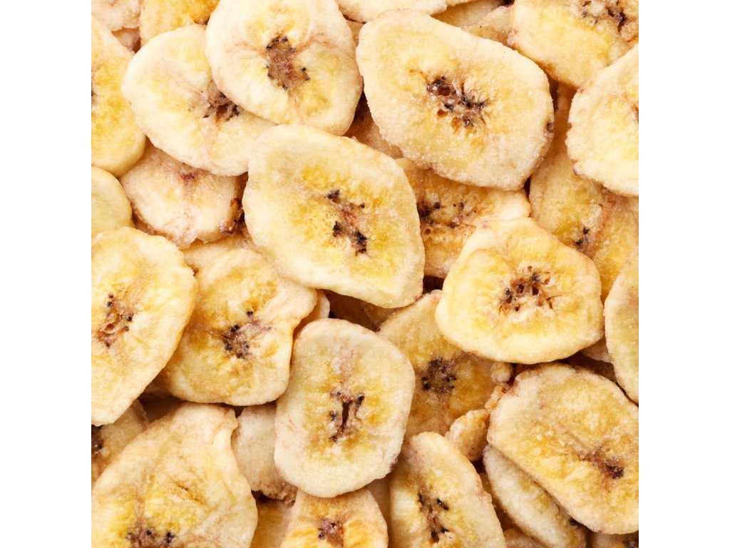 Banánové chipsy se vyrábějí sušením zralých banánů, lehkým opražením na kokosovém oleji a proslazením cukrem a medem. Stejně jako čerstvé ovoce je i to sušené bohaté na vitamíny a minerály. Banánové chipsy se přidávají do kaší a cereálií. Banánové chipsy obsahují vitamín B1, vitamín B2, vitamín B6, vitamín E, vitamín C, hořčík, draslík, sodík.