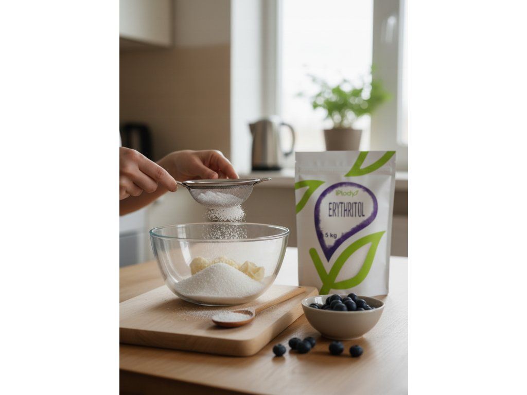 Jeho glykemický index je 0 a díky tomu neovlivňuje hladinu cukru v krvi. Je tedy vhodný pro diabetiky a při Low Carb stravování. Použít ho můžete při vaření, pečení i slazení nápojů. Erythritol je cukerný alkohol a vyrábí se fermentací glukózy z kukuřičného nebo přeničného škrobu. Jde tedy o čistě přírodní sladidlo.