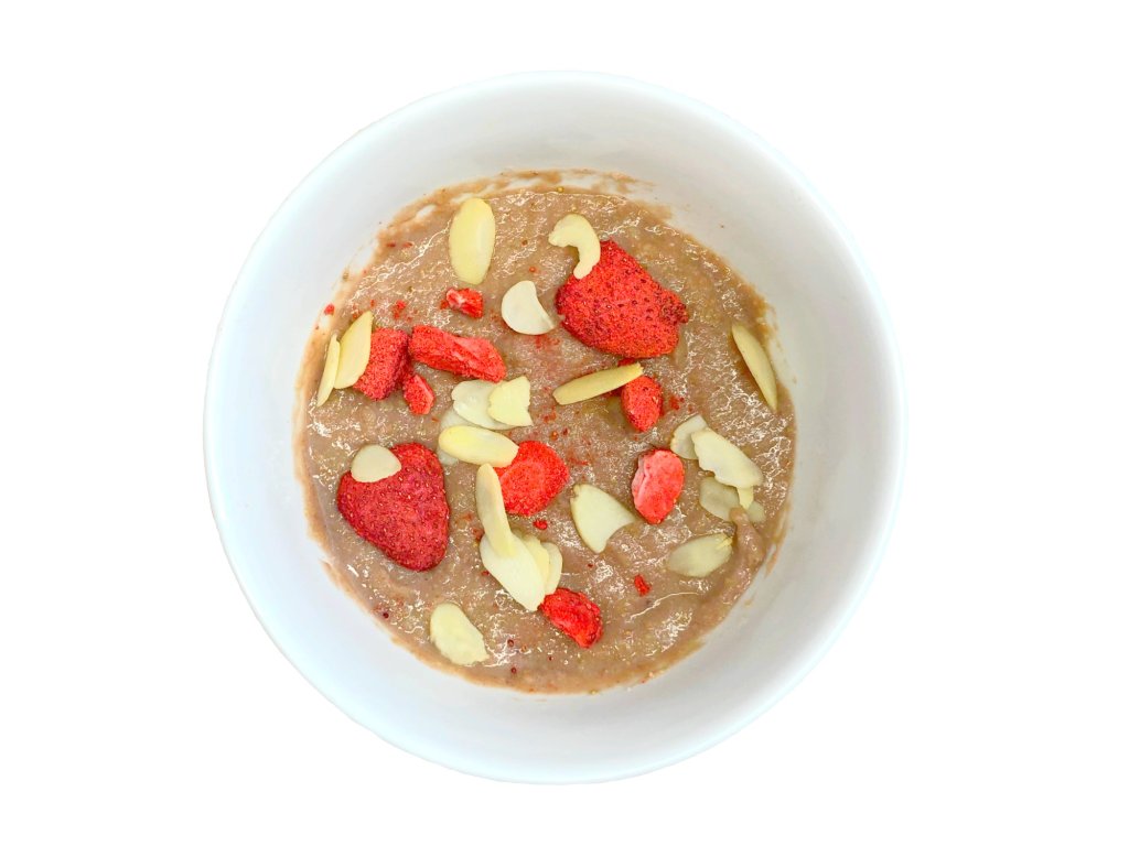 Složení: kokosové mléko, lněná mouka zlatá, mandlová mouka, inulin, erythritol, kokosová mouka, jahodový prášek lyofilizovaný