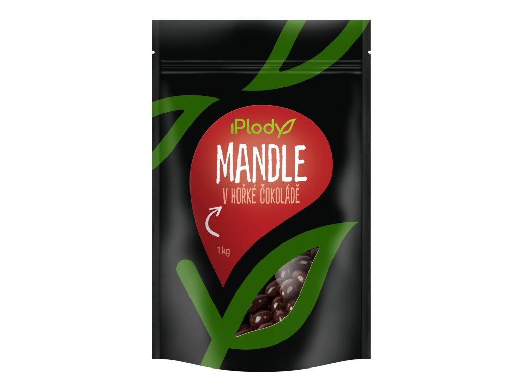 Pražená jádra mandlí máčená v hořké čokoládě.