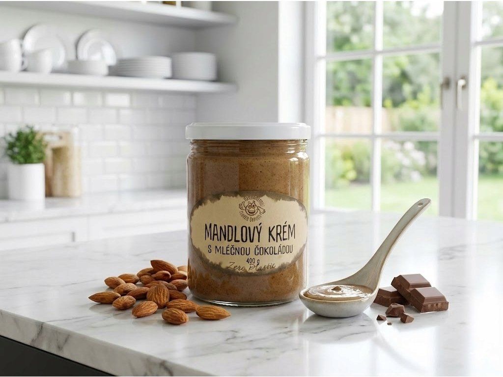 Mandlový krém s mléčnou čokoládou je chutnou a výživnou potravinou ideální jako doplněk do vašich jídel, svačinek, k vaření nebo jen tak na toast. Mandlový krém s mléčnou čokoládou zachovává jednak vysoký obsah proteinů a současně výraznou mandlovou a čokoládouvou chuť. Je přírodním zdrojem kalorií. Náš mandlový krém s ml. čokoládou je bez barviv, bez palmového oleje a bez soli. Je vyroben pouze z mandlí a kvalitní mléčné čokolády.