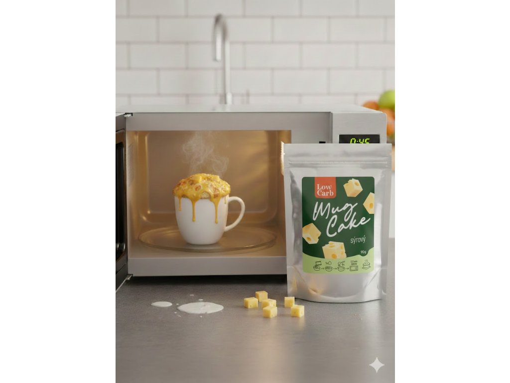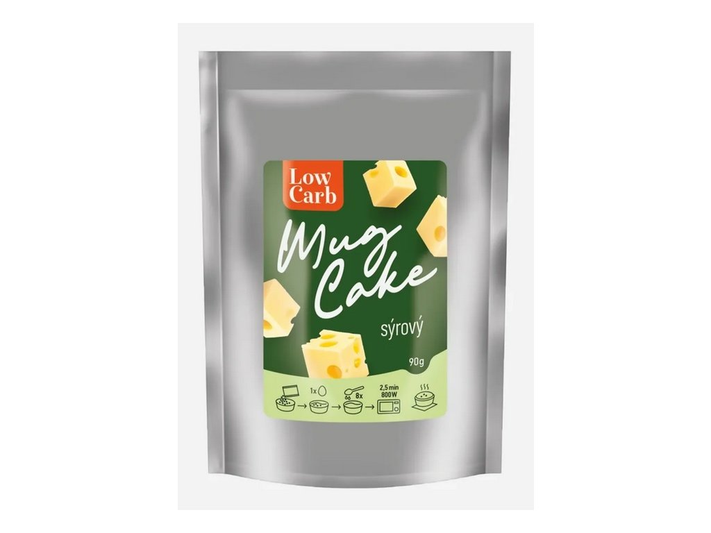 Jedinečná směs na výrobu bezlepkového sýrový mug caku s nízkým obsahem sacharidů a cukrů (LOW CARB). Příprava hrníčkového dortíku je opravdu jednoduchá a rychlá. Do pár minut si tak můžete připravit skvělou Low carb svačinku. Naše směs obsahuje vyvážený poměr všech oblíbených Low carb potravin. Mug cake se připravuje v mikrovlnné troubě a po upečení připomíná něco mezi piškotem a suflé.