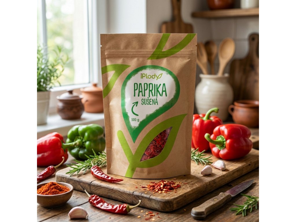 Červená paprika je mezi zeleninou jednou z nejbohatších zdrojů přírodního vitamínu C. Obsahuje i další prospěšné látky, třeba lutein a betakaroten. Šetrně sušená červená paprika ve své nejčistší formě uchovává veškeré vitamíny a minerály. Sušenou papriku využijete ve studené i teplé kuchyni. Je vhodná do masitých jídel, omáček, uzenin, ryb, ale i do vaječných pokrmů a polévek.