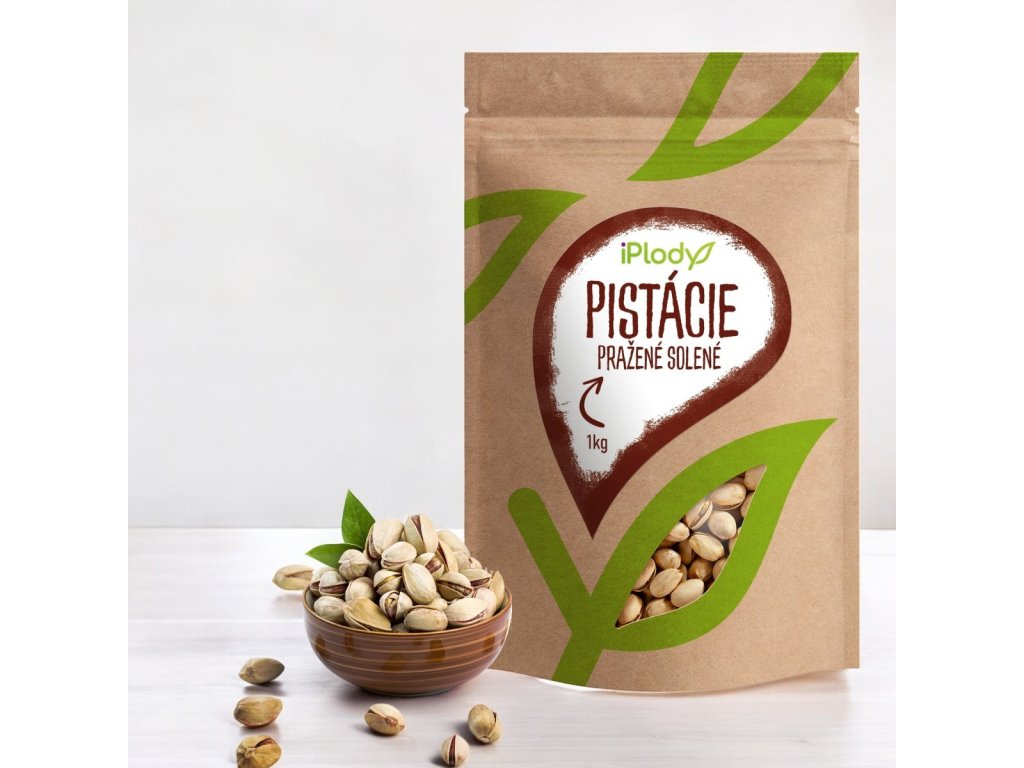 Vyzrálé, lehce opražené, solené pistácie. Pistácie jsou velmi kvalitním zdrojem bílkovin a poskytují adekvátní a vyvážené množství aminokyselin. Pistácie obsahují tuky, tuk je však převážně mononenasycený, podobně jako v olivovém oleji.