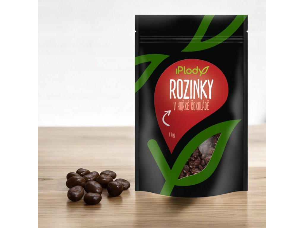 Složení: Rozinky sušené 59% (+/- 1%) - rozinky, slunečnicový olej (A) / nebo bavlníkový olej (B). Použitý druh oleje viz označení A/B u data minimální trvanlivosti. Hořká čokoláda 40% (+/- 5%) - cukr, kakaová hmota, kakaové máslo, rostlinné tuky (palmový olej, olej z máslovníku, Sal, olej z jader manga), mléčný tuk, emulgátory: slunečnicový lecitin a polyglycerylpolyricinoleát; přírodní vanilkové aroma. Leštící směs - tapiokový škrob, cukr, lešticí látka: šelak; kokosový olej, kyselina: kyselina citronová, konzervant: kyselina sorbová.