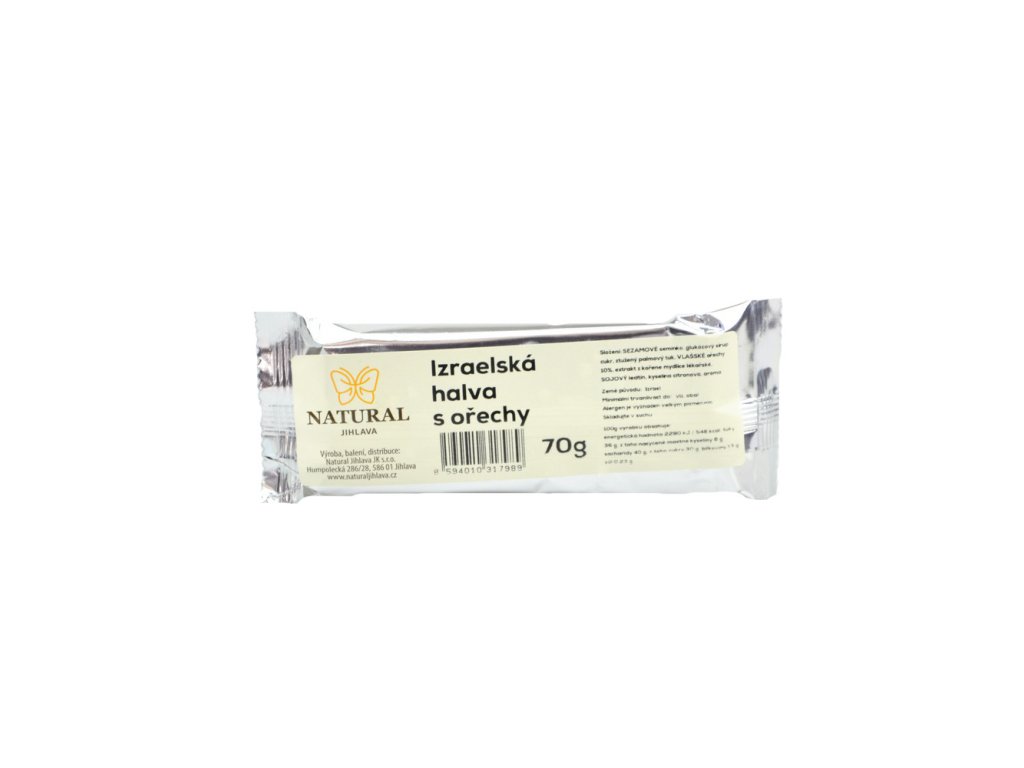 Složení: Sezamové semínko, glukózový sirup, cukr, palmový tuk, přírodní vanilkové aroma, vlašské ořechy, extract z kořene mydlice lékařské, aroma