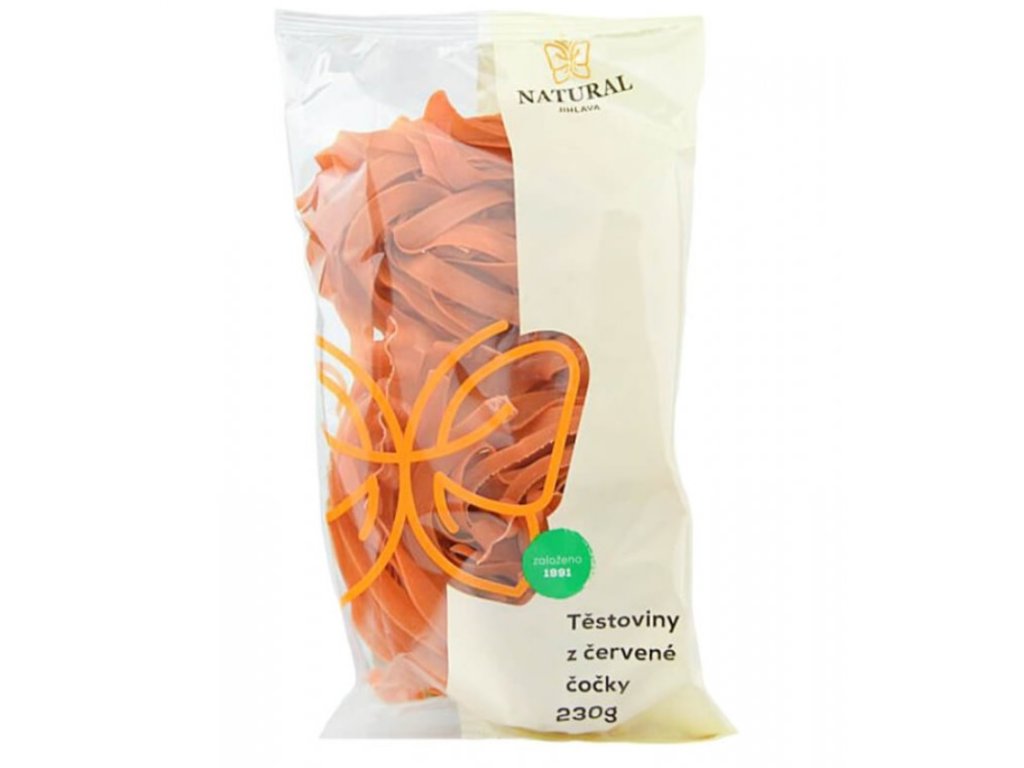 Vyzkoušejte výborné bezlepkové těstoviny z červené čočky. Červená čočka je výborným zdrojem vlákniny i bílkovin a díky tomu jsou tyto tětoviny vhodné pro celiaky, popř. i vegany. Těstoviny z červené čočky jsou velmi rychle uvařené a můžete je použít pro přípravu salátu, přílohy nebo jako hlavní chod. Těstoviny jsou lehce stravitelné.