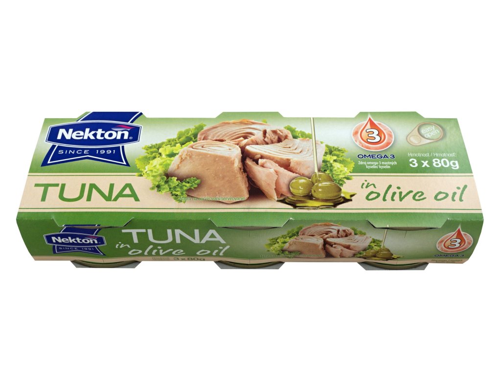 Složení: Tuňák pruhovaný (Katsuwonus pelamis) - kusy 65 %, olivový olej 34 %, jedlá sůl. Hmotnost pevného podílu: 3 x 52g.
