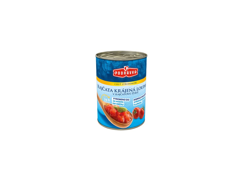 Rajčatové výrobky Podravka se vyrábí z nejkvalitnějších rajčat vypěstovaných ve slunném Středomoří. Krájená loupaná rajčata se hodí jako základ omáček, k těstovinám či do polévek. Jsou bohaté na lycopen, neobsahují žádné přídatné látky ani sůl, mají přirozeně nízkou kalorickou hodnotu.