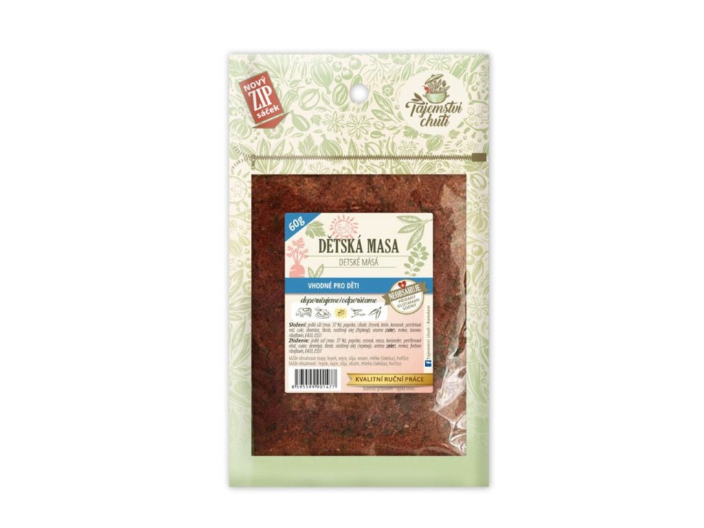 Tato směs je zejména pro přípravu dětských jídel a dochucení všech dietních pokrmů. Skvělá volba při přípravě masa , omáček a zeleninky pro naše dětičky. I naši nejmenší se chtějí zúčastnit práce v kuchyni a pomáhat rodičům s přípravou pokrmů. Chtějí s námi sdílet radost z vaření. Tato vyvážená směs je vhodná svým složením pro celou rodinu. Koření neobsahuje glutaman sodný.