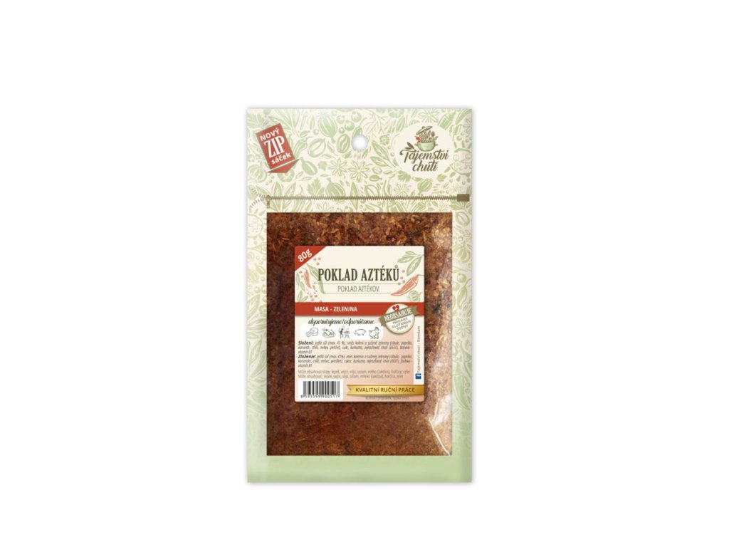 Složení: Jedlá sůl (max. 41 %), směs koření a sušené zeleniny (cibule, paprika, koriandr, chilli, mrkev, petržel) cukr, kurkuma, zvýrazňovač chuti (E631), barvivo-vitamin B1