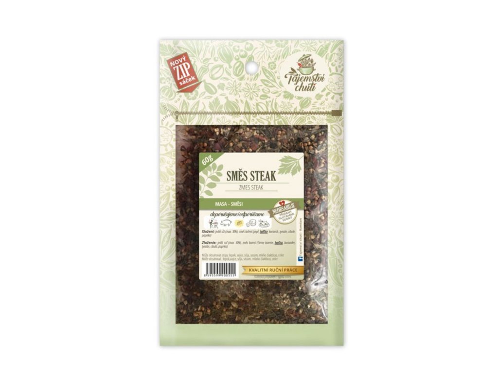 Vynikající steaková směs koření. Je to velmi bohatá a pikantní směs, zvlášť vhodná na nakládání masa, na dušená masa a zeleninové směsi.