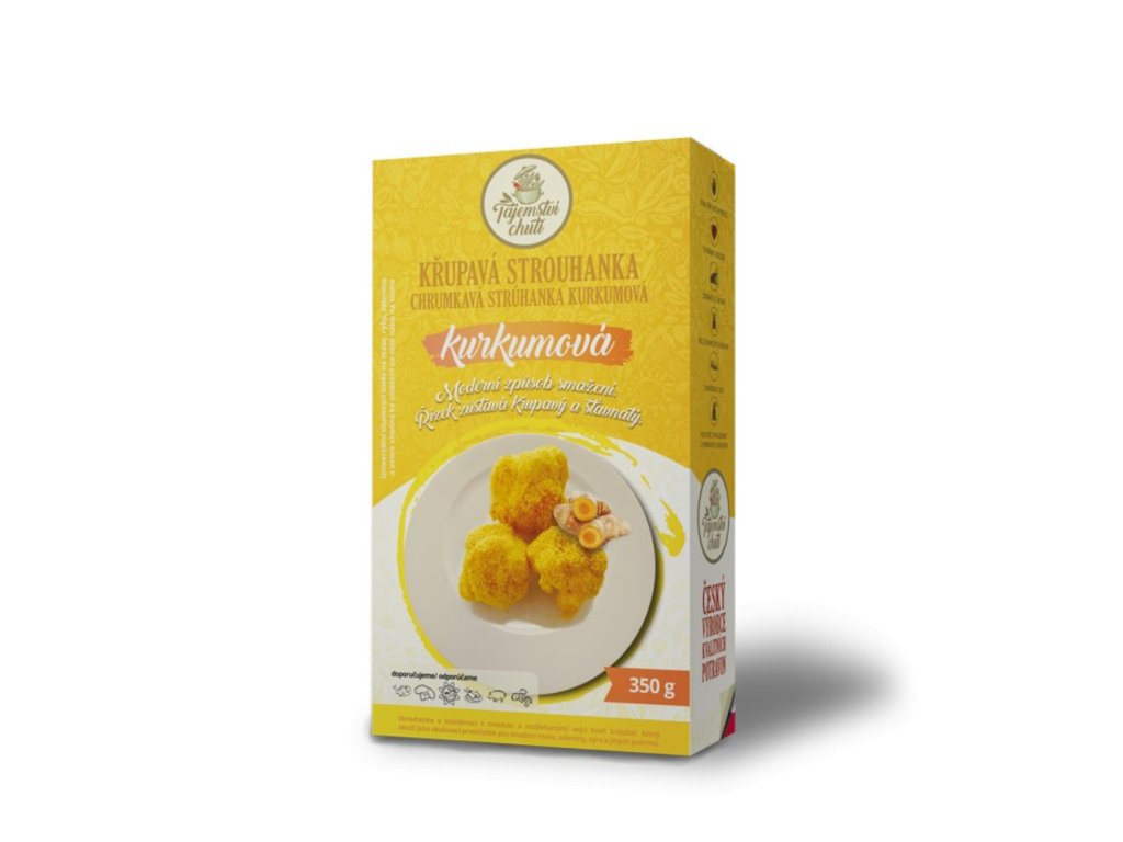 Moderní univerzální obalovací směs vyrobená podle vlastní receptury k přípravě masa, ryb, zeleniny, sýrů. Vhodná ke smažení na oleji, na sucho i na grilu. Kurkuma dodá vašemu jídlu krásnou zlatavou barvu a příjemnou orientální chuť. Díky modernímu technologickému zpracování tato obalovací směs během smažení nepřijímá v takovém množství tuk a vodu jako klasické strouhanky dostupné na českém trhu, kůrka zůstává křupavá a obalovaná surovina šťavnatá.