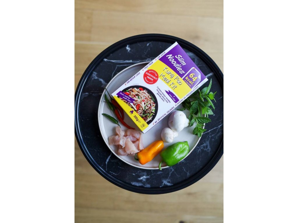 Hotové jídlo s Kung Pao omáčkou a kořením je zdravou a chutnou variantou pro rychlé domácí vaření. Balení obsahuje konjakové nudle, lahodnou Kung Pao omáčku a balíček s kořením. Stačí všechny ingredience smíchat a do 90 vteřin můžete servírovat. Hotové nízkokalorické jídlo je bezlepkové, veganské, bez umělých aromat, bez umělých barviv a bez konzervantů. Je skvělým doplňkem při redukčních dietách, protože má snížený obsah sacharidů a soli, nízký obsah cukrů a je bez tuku.