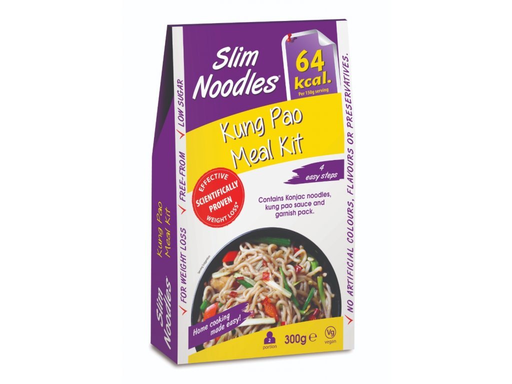 Složení: Konjakové nudle 69 % (pitná voda, tapiokový škrob, konjaková mouka, stabilizátor: karobová guma, barvivo: betakaroten), Kung Pao omáčka 30 % [pitná voda, třtinová melasa, sójová omáčka v prášku (sójové vločky, maltodextrin, protispékavá látka), cukr, modifikovaný škrob, česnek, zázvor, ocet, sezamový olej, sůl, sušená cibule, barvivo: karamel, sušený česnek, červený chilli prášek, čínská směs pěti koření (badyán, fagaru-sečuánský pepř, fenykl, mletá skořice, hřebíček), regulátor kyselosti: kyselina citronová, stabilizátor: xantanová guma, přírodní barvivo: paprikový extrakt], balíček s kořením 1 % (černý pepř).