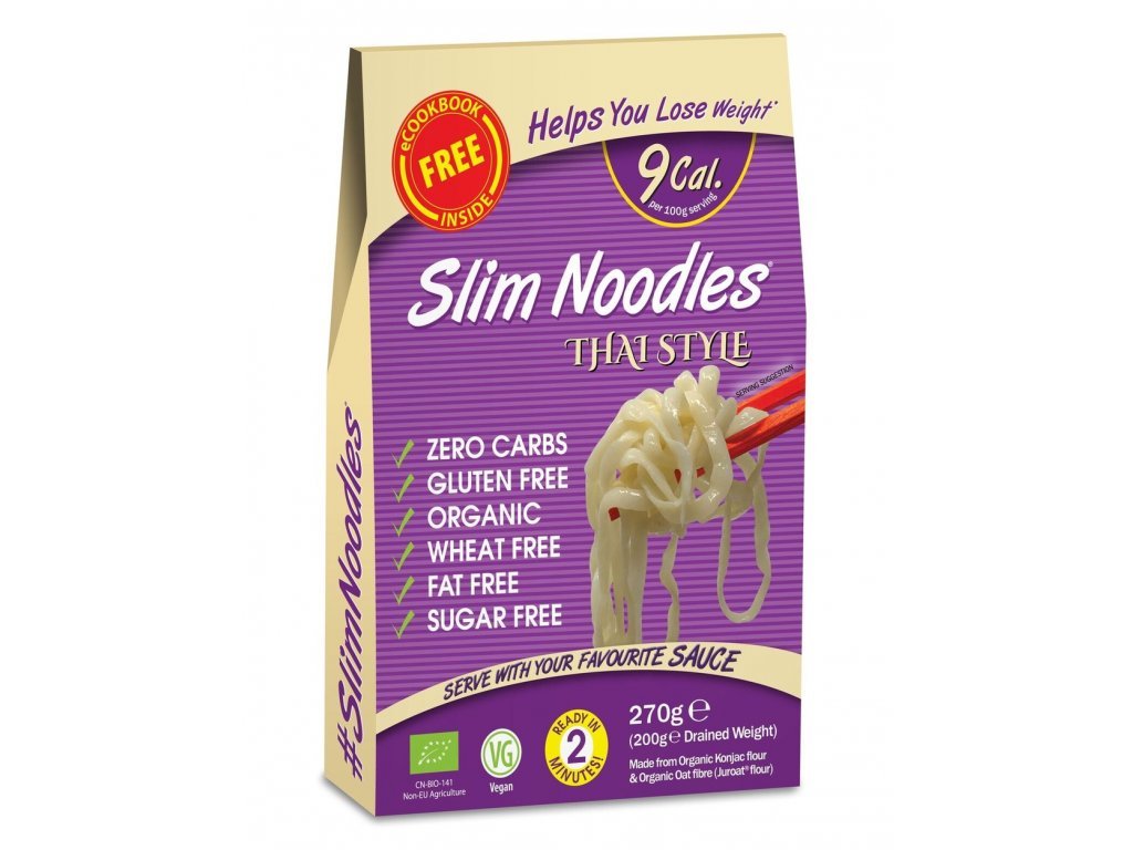 Konjakové thajské nudle BIO v nálevu jsou zdravou alternativou ke klasickým těstovinám. Obsažená vláknina glukomannan přispívá ke snížení hmotností* a k udržení normální hladiny cholesterolu v krvi**. Konjakové thajské nudle BIO v nálevu mají minimální energetickou hodnotu a neobsahují sacharidy, sůl ani tuk. Díky svému složení jsou tedy ideální součástí redukčního jídelníčku a hodí se také pro jedince se speciálními výživovými potřebami, jako jsou vegani, vegetariáni, celiaci, diabetici nebo jedinci s intolerancí na laktózu.