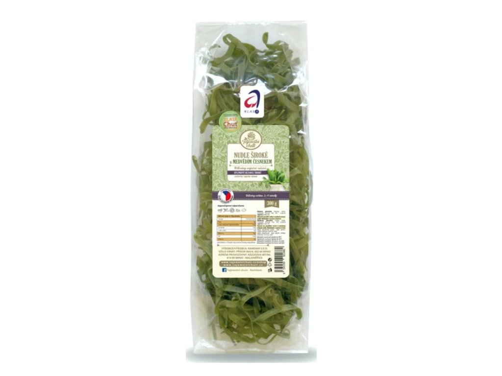 Složení: pšeničná mouka, medvědí česnek 3%, sušená vaječná směs 2%.