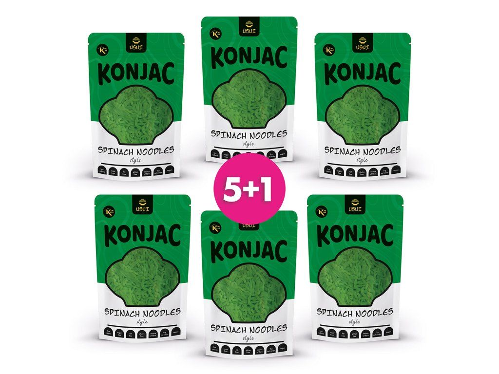 Složení balíčku: 6 x USUI Konjakové nudle se špenátem v nálevu 270 g