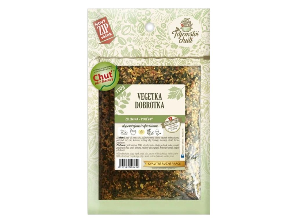 Použití: Používá se jako univerzální dochucovadlo vhodné do masových jídel, polévek, nudlí, těstovin, rýže, zeleniny, míchaných vajec a nádivek. Jemná výrazně žlutá zeleninová směs obohacená kurkumou.
